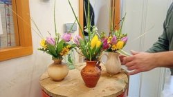 On va chercher des fleurs ( des jonquilles), des feuilles, de la verdure dans les plantations du (…)