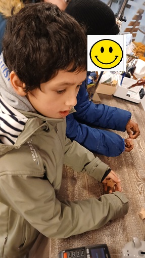 Il s’agit aussi de s’adapter à un nouvel environnement. Les relations sociales sont travaillées concrètement avec un enchainement d’actions : 1. entrer calmement 2. dire bonjour aux personnes présentes 3. choisir une seule décoration 4. payer à la caisse en donnant sa pièce 5. dire merci et au revoir.