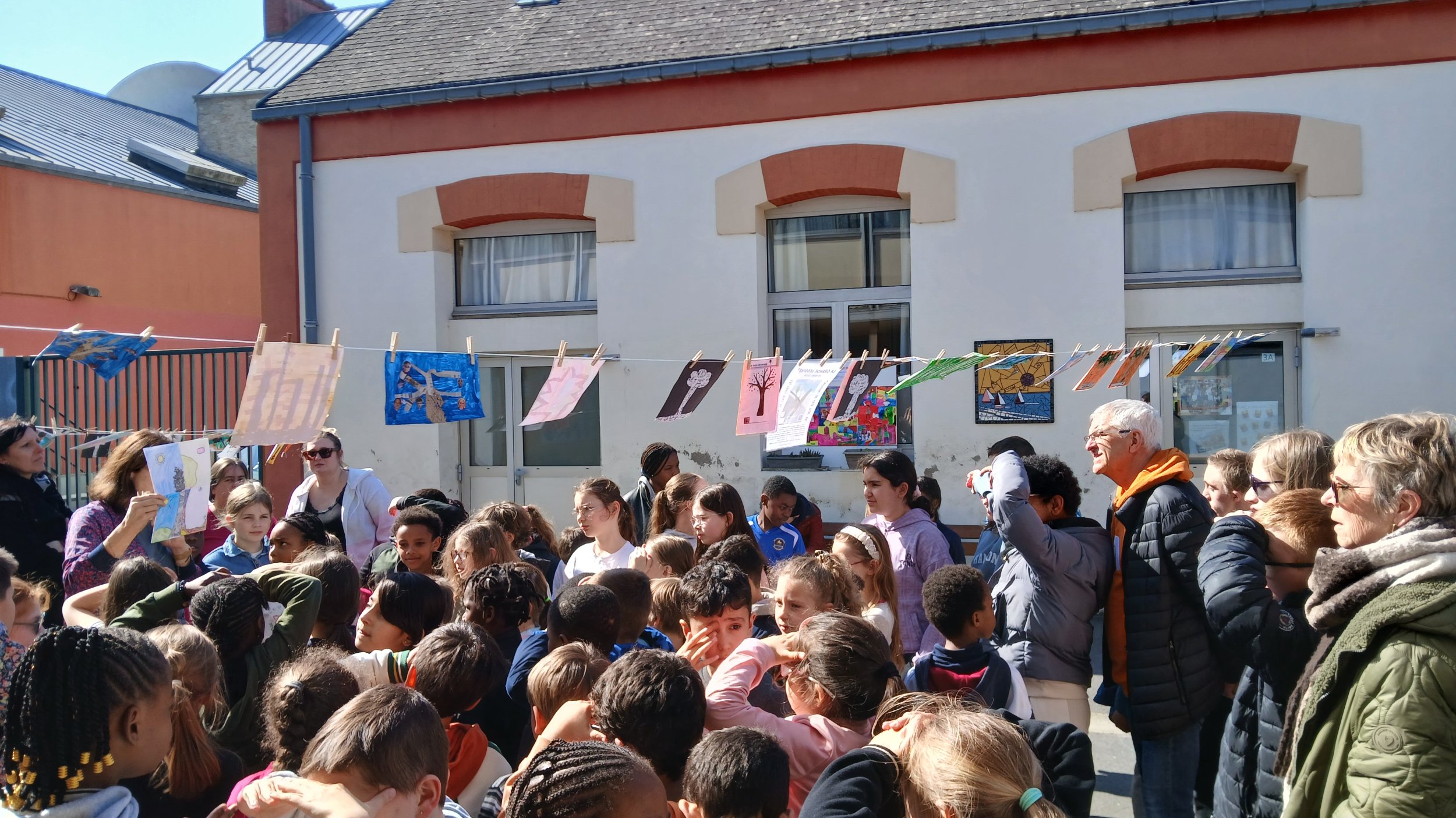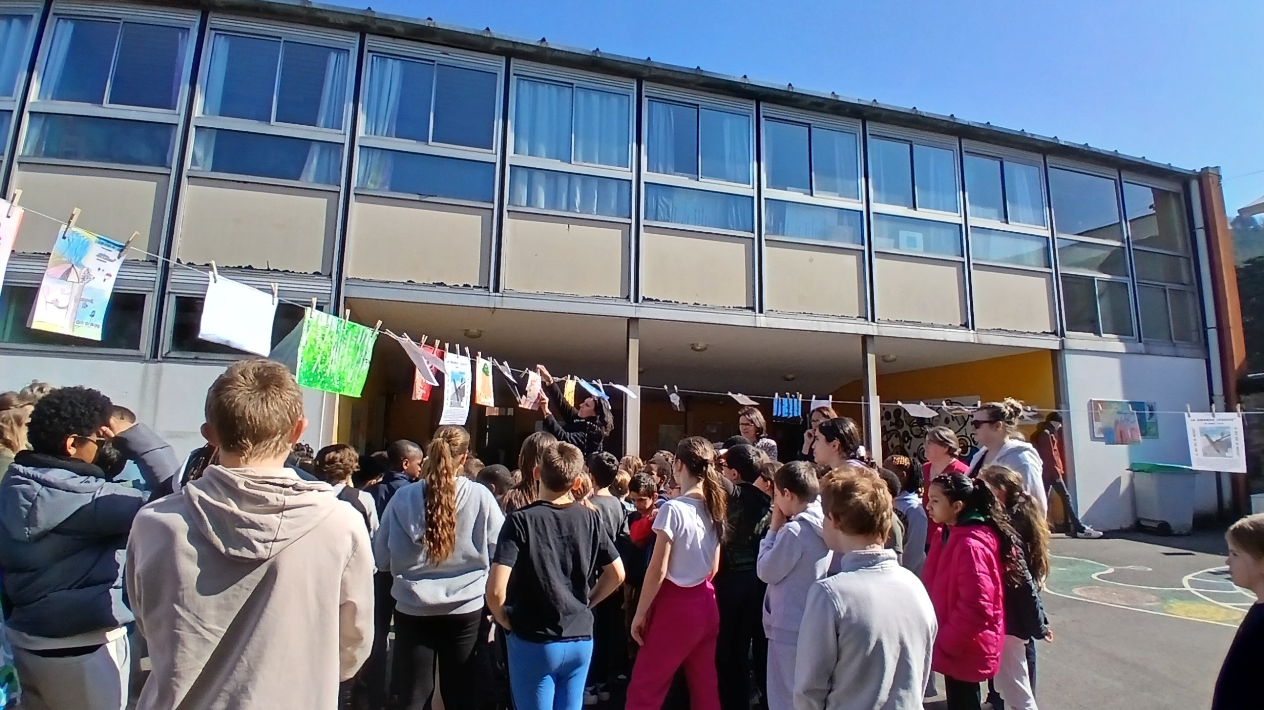 Jeudi 19 mars, l’école DOISNEAU a organisé un évènement artistique éphémère « LA GRANDE LESSIVE » et a accueilli un groupe de l’IME ACAIS.