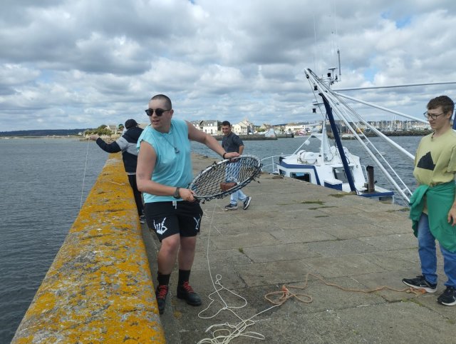 Nous avons pêché une vingtaine de crabes verts avec une épuisette (ça ne se mange pas). D’autres ont essayé avec une canne à pêche d’attraper des poissons.