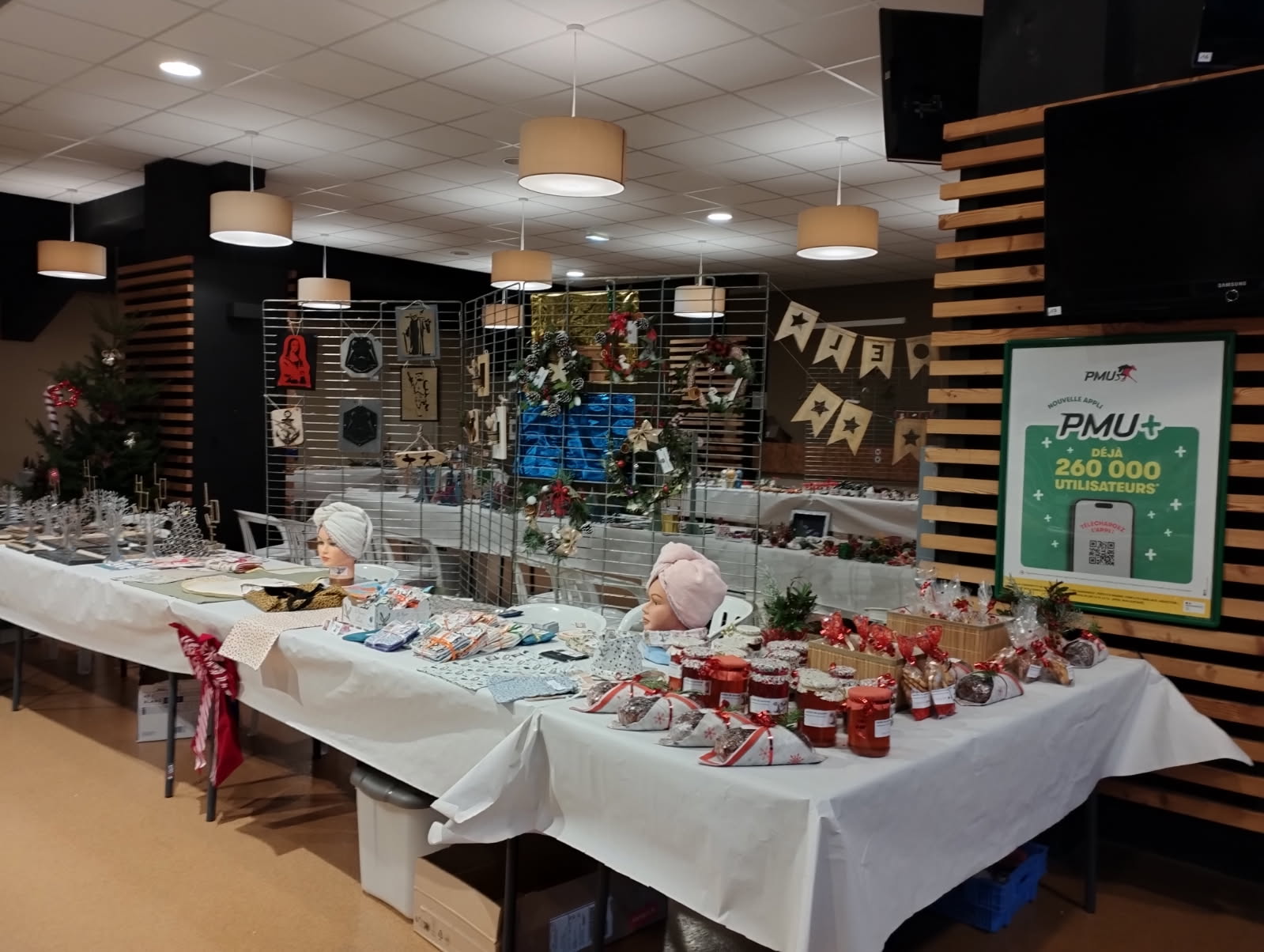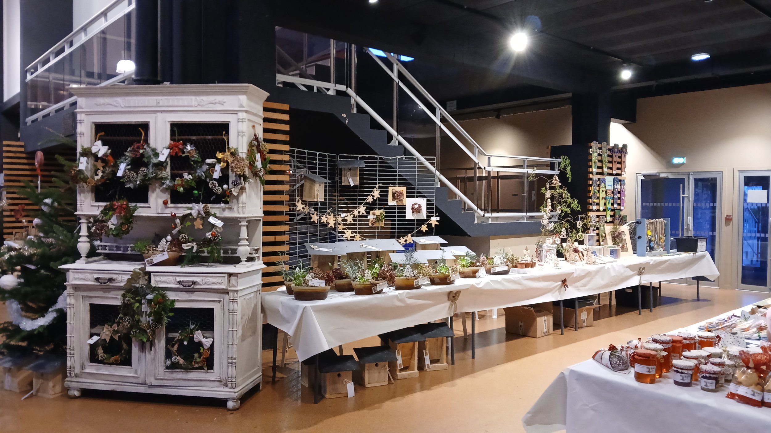 Sur l’atelier Bois, on a vendu des cadres, étoiles en bois pour accrocher dans les sapins, des boules et des sapins, des tire- bottes, … Patricia a même fait une démonstration de l’utilisation du tire- bottes.
