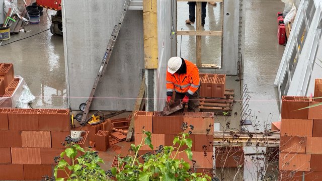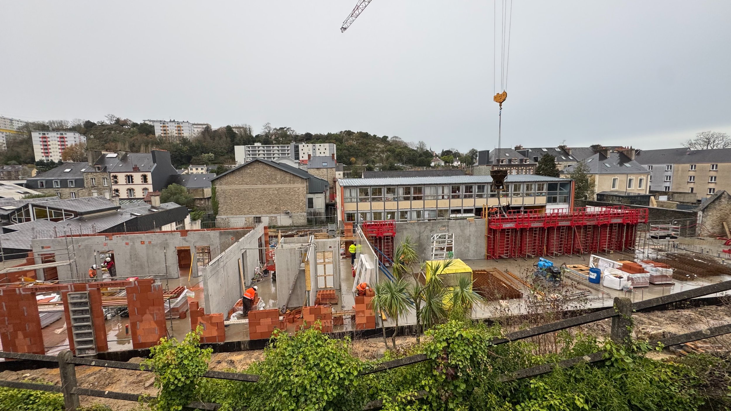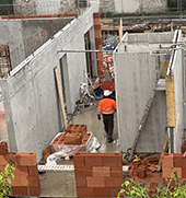 On voit des murs en briques qui seront à l’extérieur du bâtiment.
