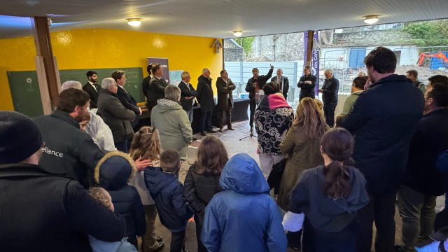Il y a eu une cérémonie de démarrage des travaux à l’école avec des représentants de la mairie, du département et d’autres officiels.