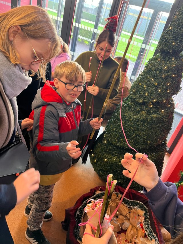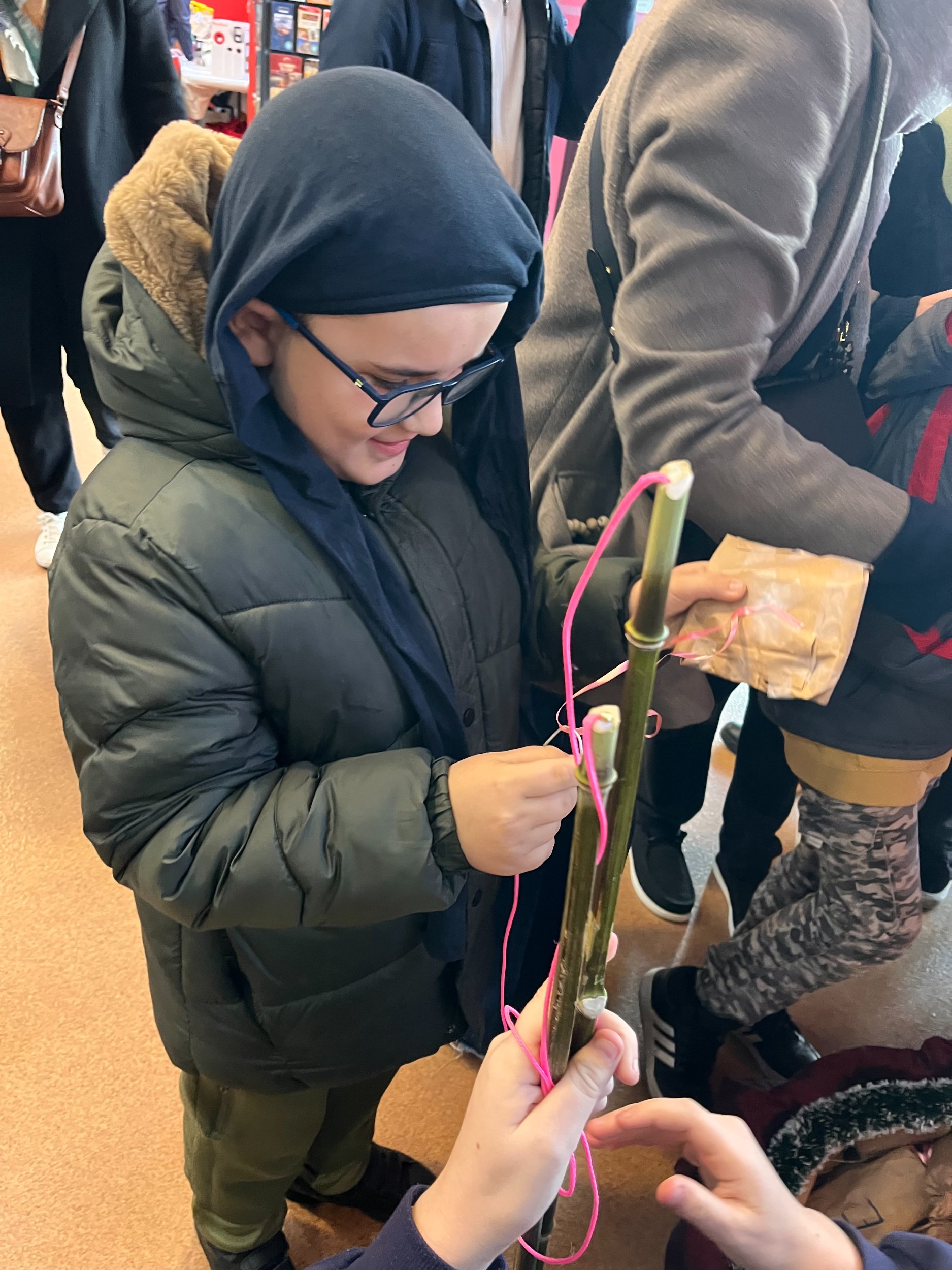 Avant de partir, nous avons joué à la pêche à la ligne. Nous avons eu des petits cadeaux (ballon de baudruche, verre, parfum, stylo, …)