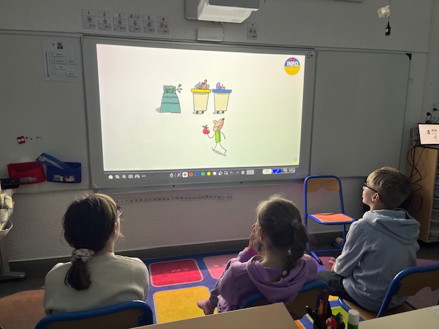Nous l’avons également utilisé pour regarder une vidéo sur le tri des déchets et pour faire un jeu interactif sur le recyclage. Tout le monde était très motivé !