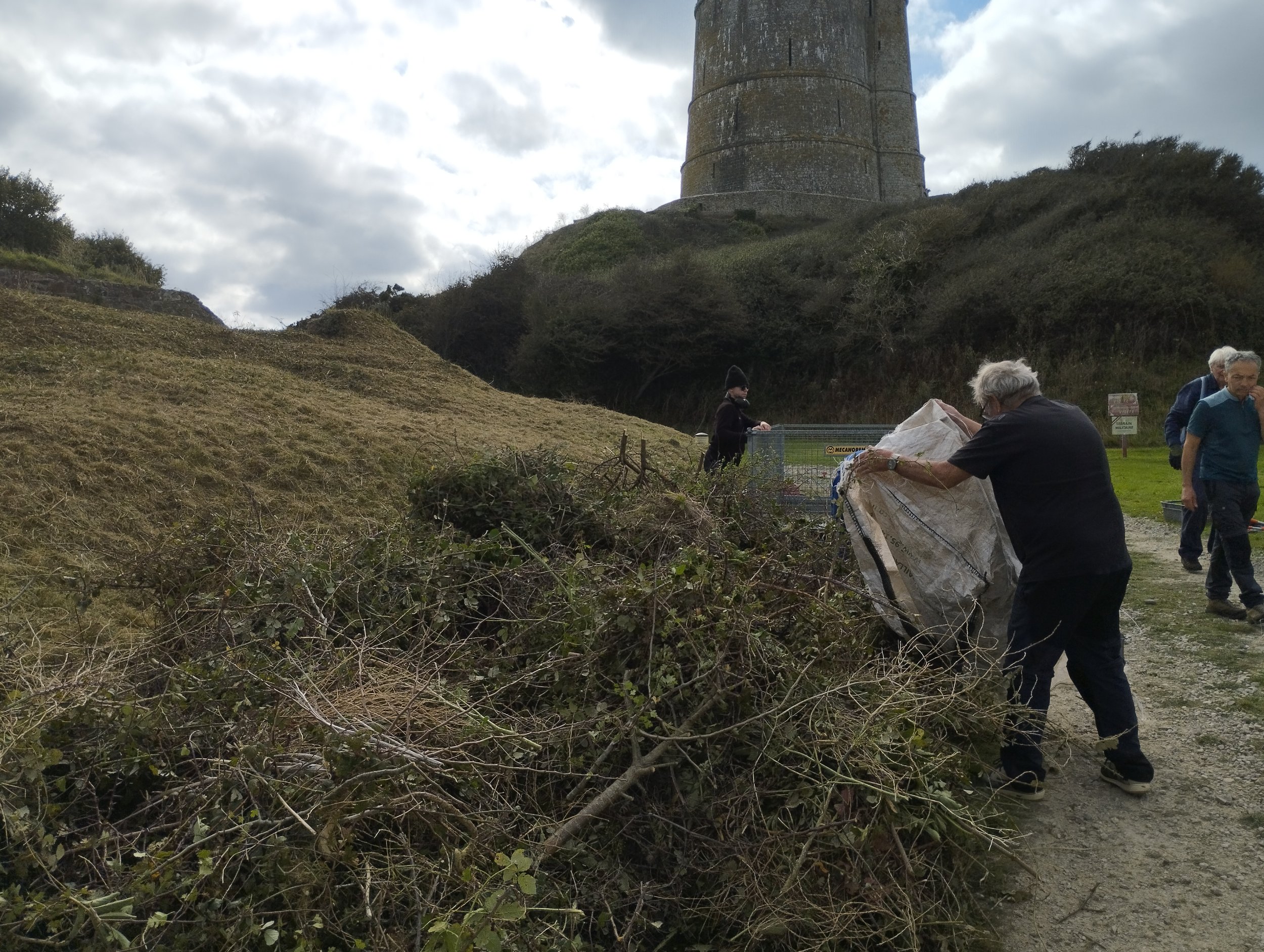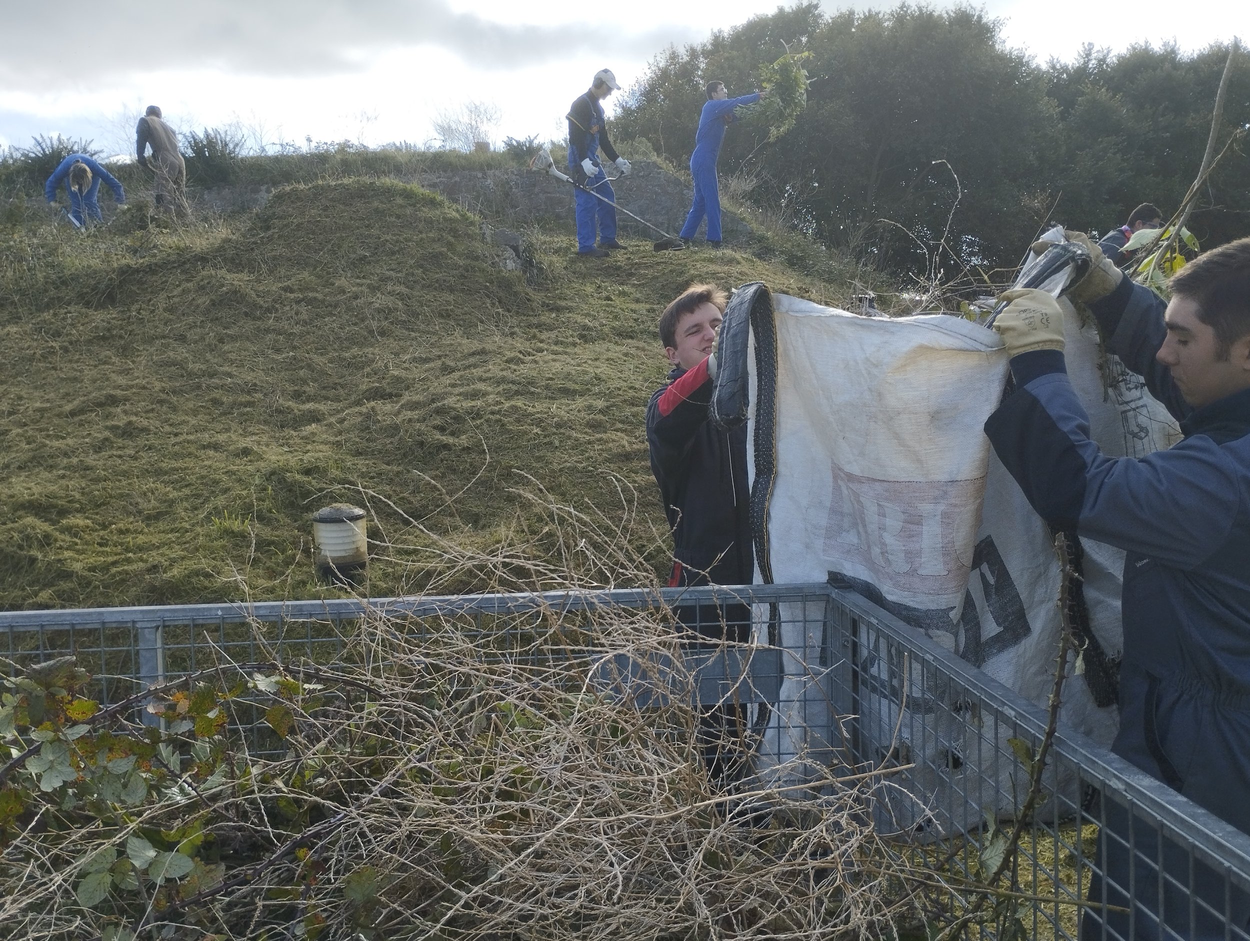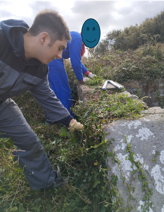 Début Octobre, comme l’an dernier, les jeunes et éducateurs des groupes Ferronnerie et jardins espaces Verts sont allés prêter main forte aux bénévoles de l’Association Orchis pour l’entretien des abords de la tour Vauban de Saint Vaast La Hougue.